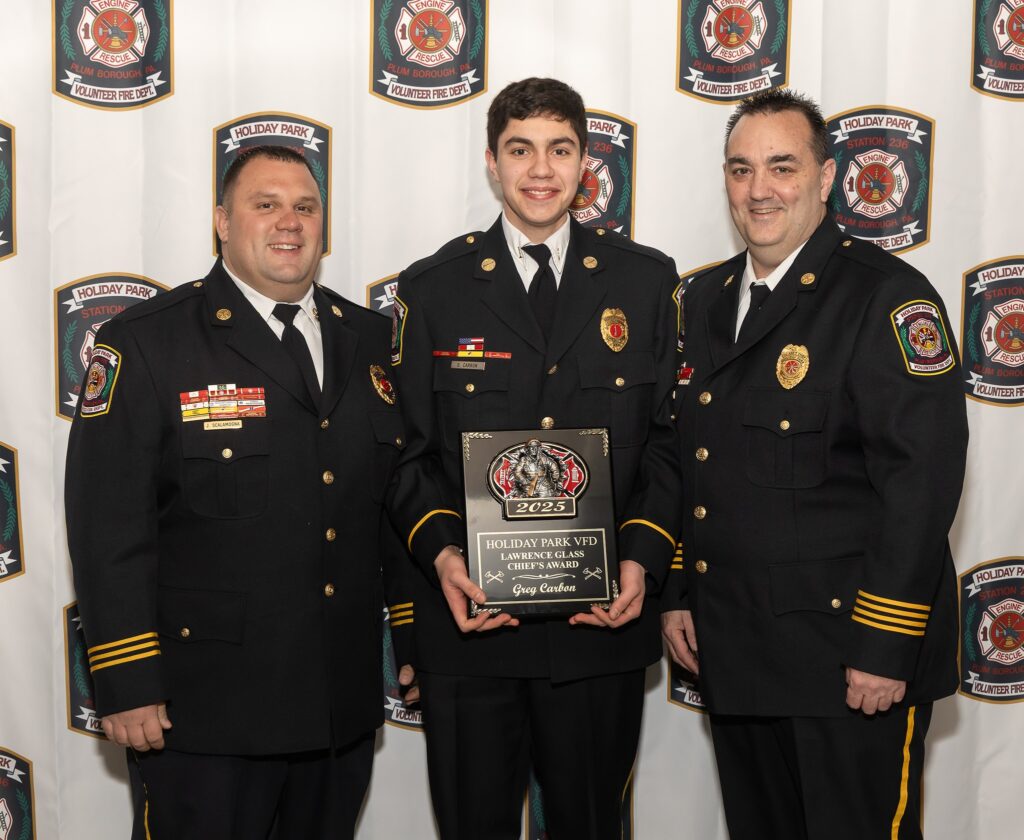 The Lawrence E. Glass Chief’s Award is presented to an active member of the fire department who has performed above and beyond to the department in operational areas. The chief line officers of the department select the member each year and the award is named after past Fire Chief & Life Member Larry Glass. The award is presented at the annual banquet by his widow, Carol Glass.