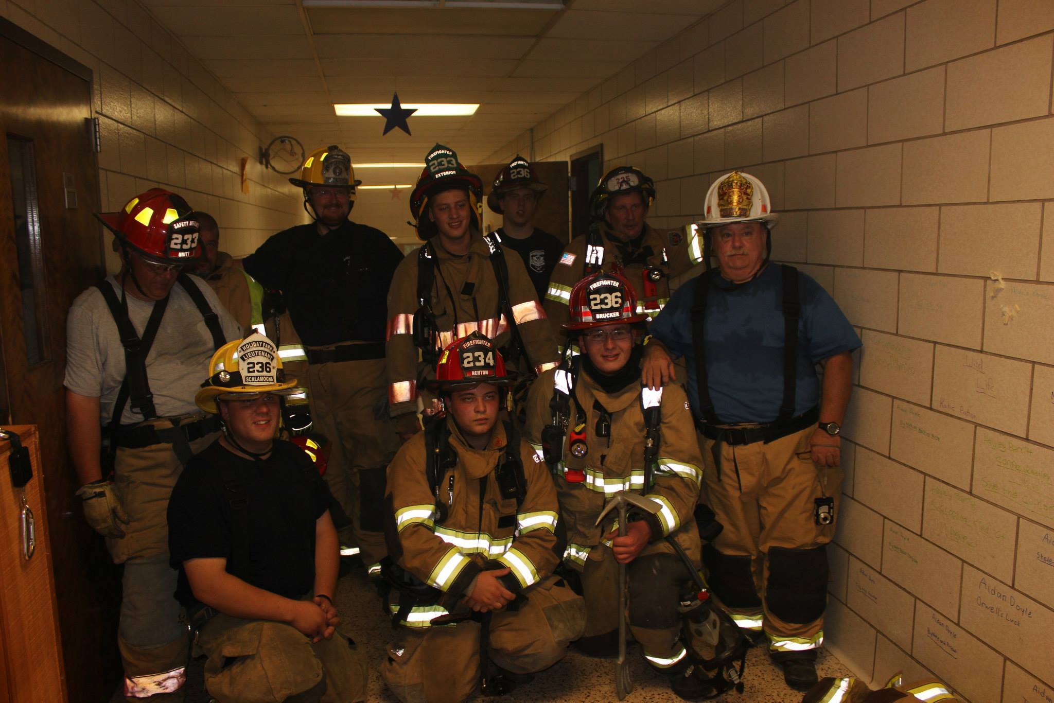 Chief Glass (white helmet) during a training session at the old Holiday Park Elementary School in 2013