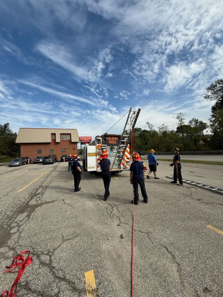 Our firefighters completed the final segments of Basic Ropes & Rigging on Saturday with day-long practical exercises overseen by lead instructor Norm Auvil. The crews started out assembling a 4 and 1 pully system and lifted Firefighter Carbon with 236-Truck main 105 foot ladder.