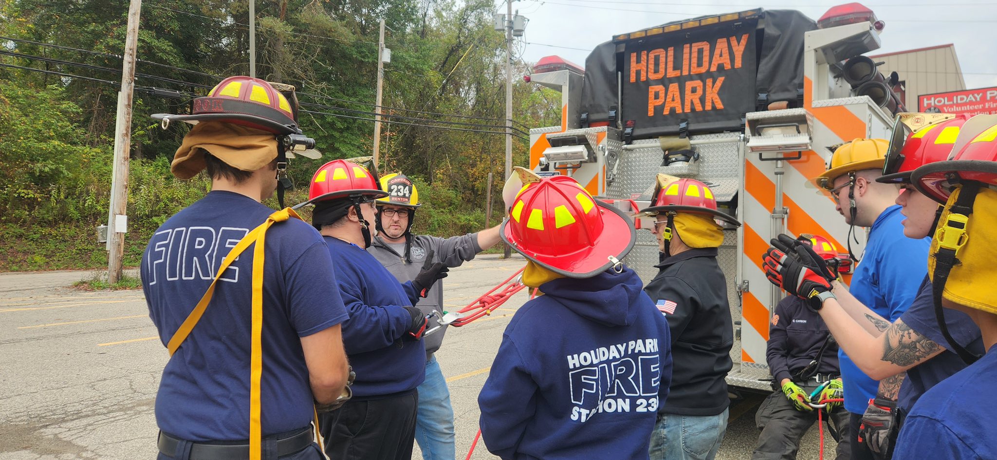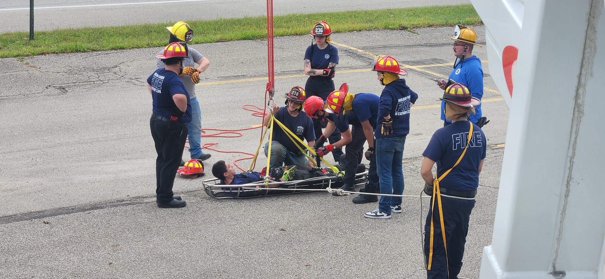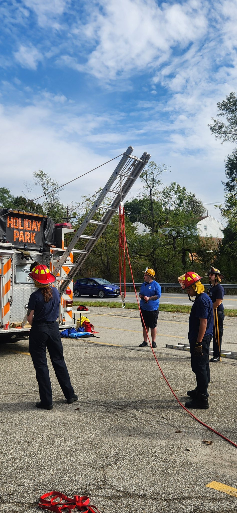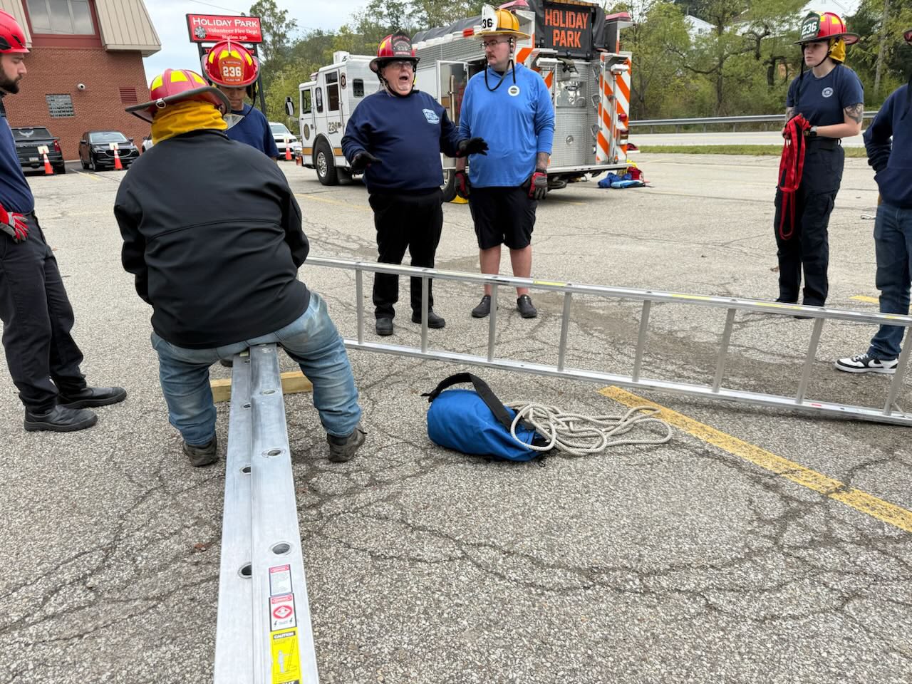 Our firefighters completed the final segments of Basic Ropes & Rigging on Saturday with day-long practical exercises overseen by lead instructor Norm Auvil. The crews started out assembling a 4 and 1 pully system and lifted Firefighter Carbon with 236-Truck main 105 foot ladder.