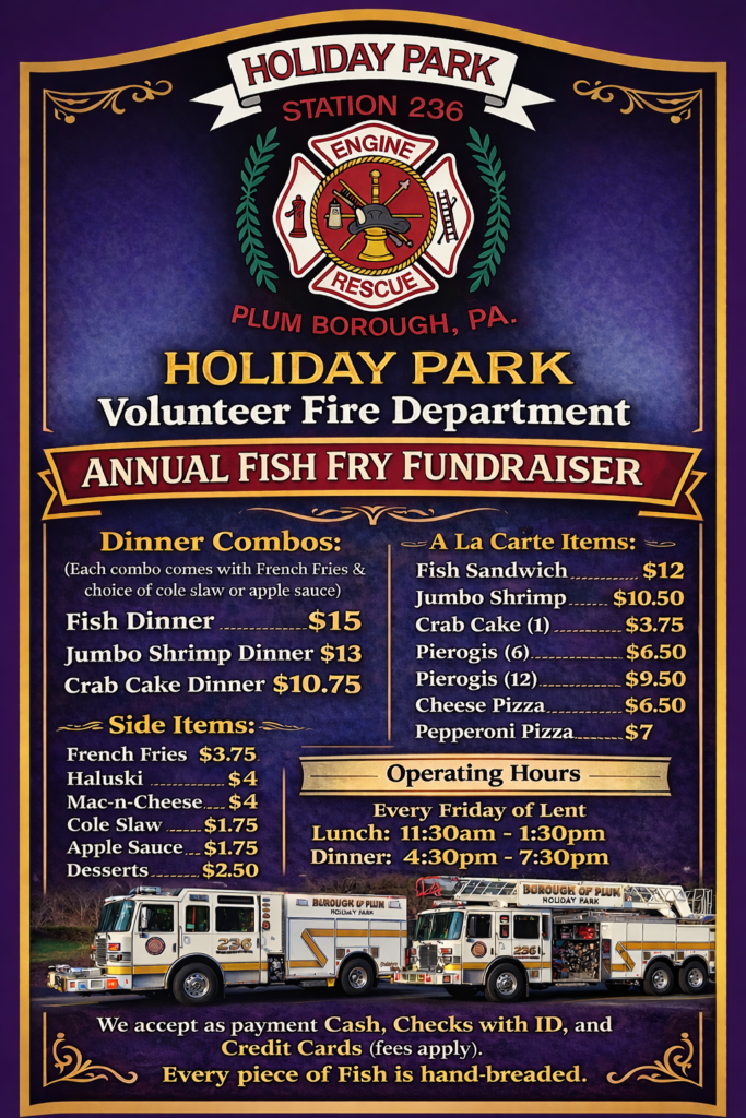All the tasty “hand breaded” fried fish, side items, and treats you loved from your favorite fire department will be available for Dine-In, Delivery, or Take-Out during lunch and dinner every Friday during Lent.